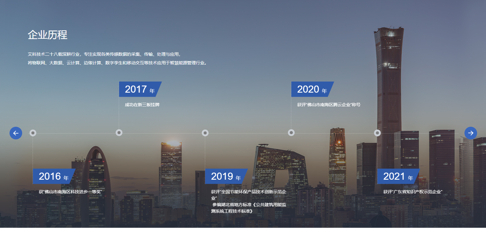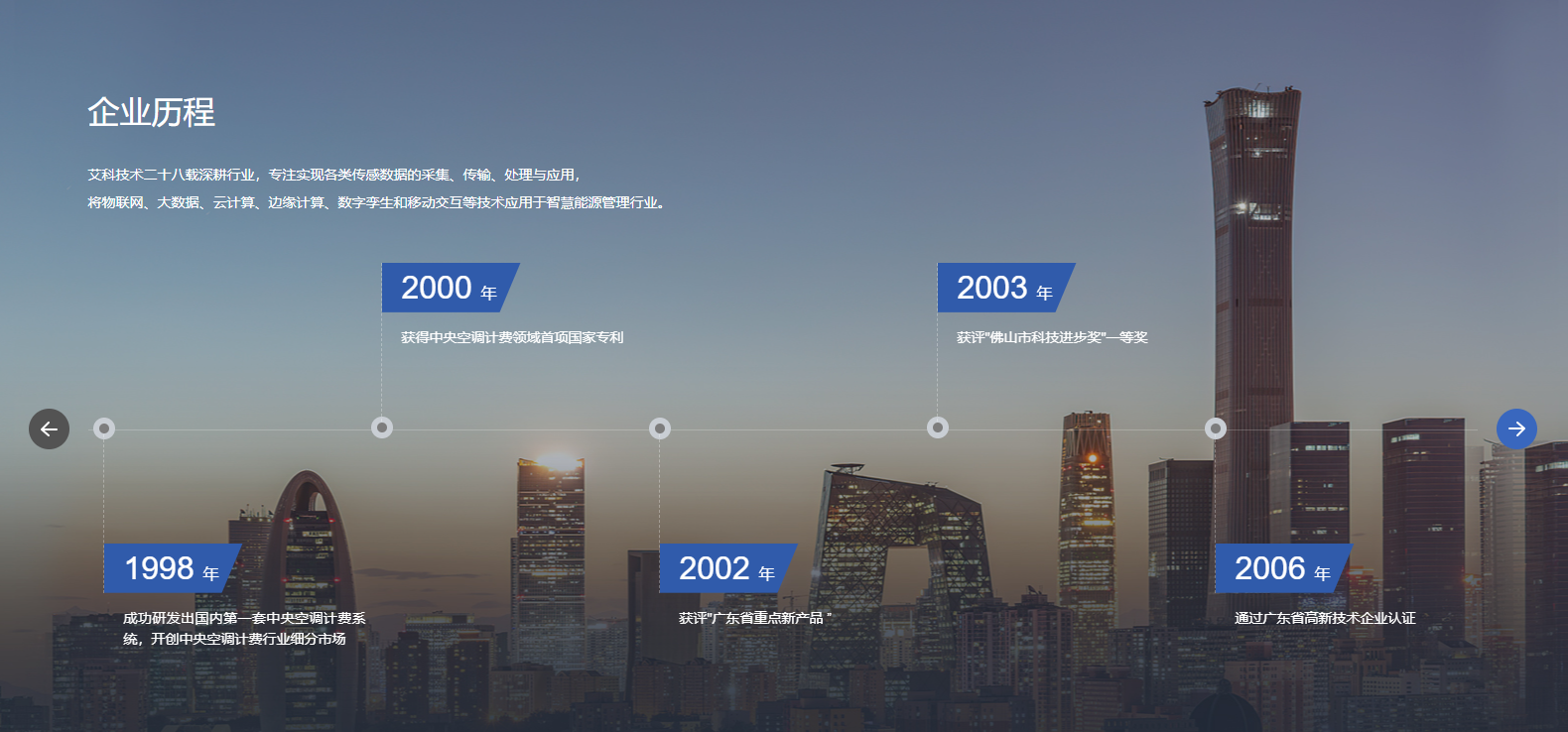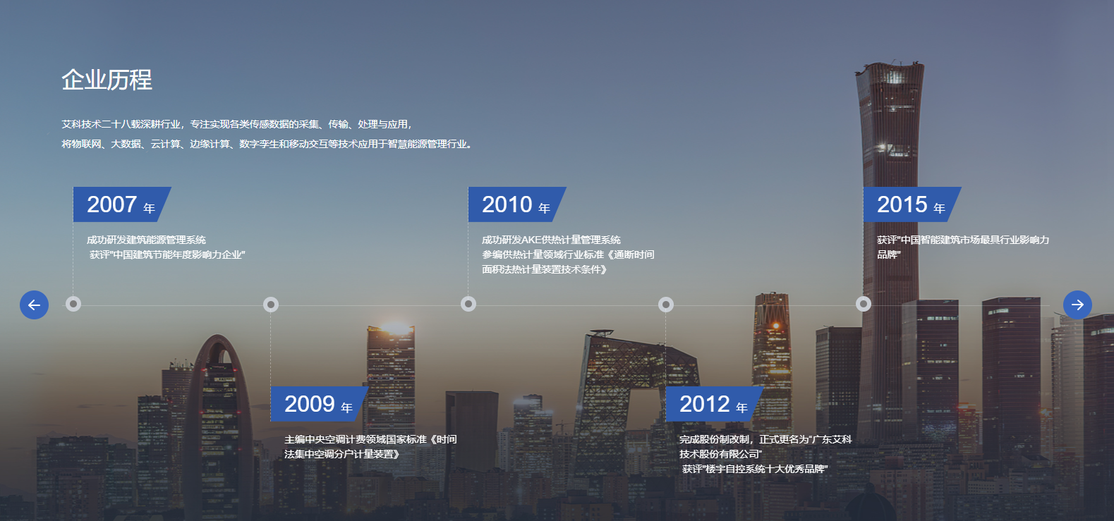 广东艾科技术股份有限公司成立于1997年,是国内领先的智慧能源管理整体解决方案服务商,2017年艾科在新三板挂牌,股票代码871148。艾科一直坚持自主创新,拥有强大的产品研发能力,致力于以管理促进节能,以技术创新节能,为国内外客户提供建筑能源管理、智慧水务、智慧供热、综合节能服务四大领域的整体解决方案,助力客户实现能源管理信息化、自动化、智能化和精细化,助力不同业态实现绿色节能与降本增效,实现“双碳”目标。