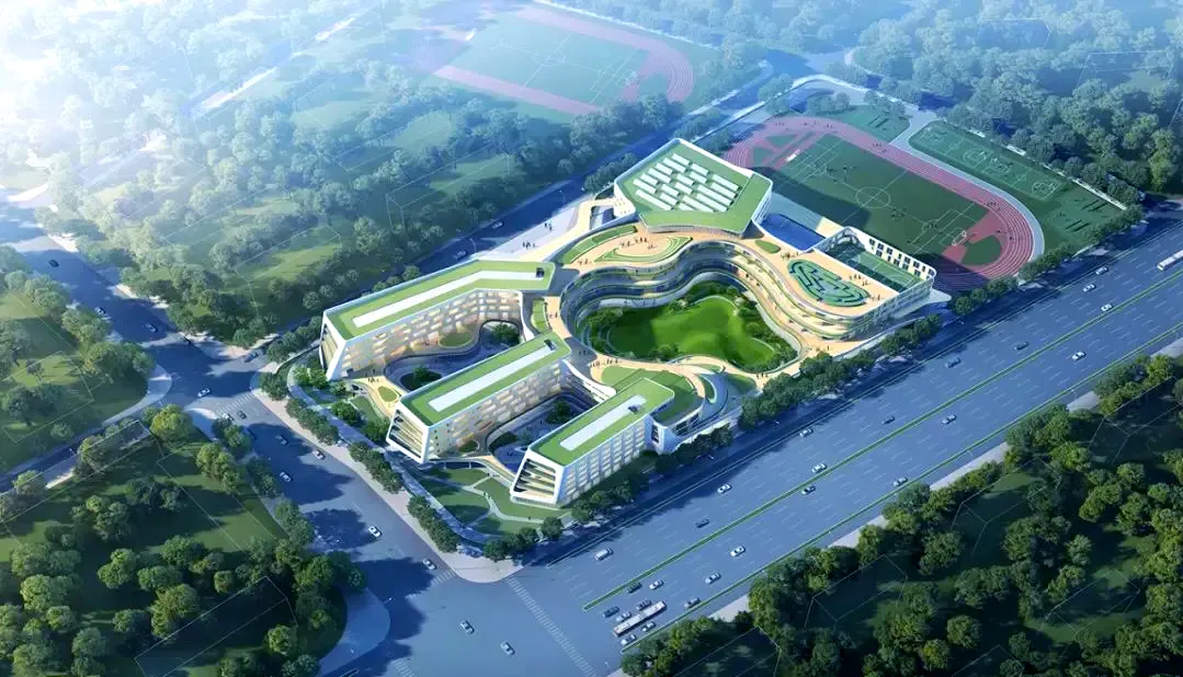 项目简介:总建筑面积约6.2万㎡,开设48个班,校园内设有智能化教室,打造全域智慧校园